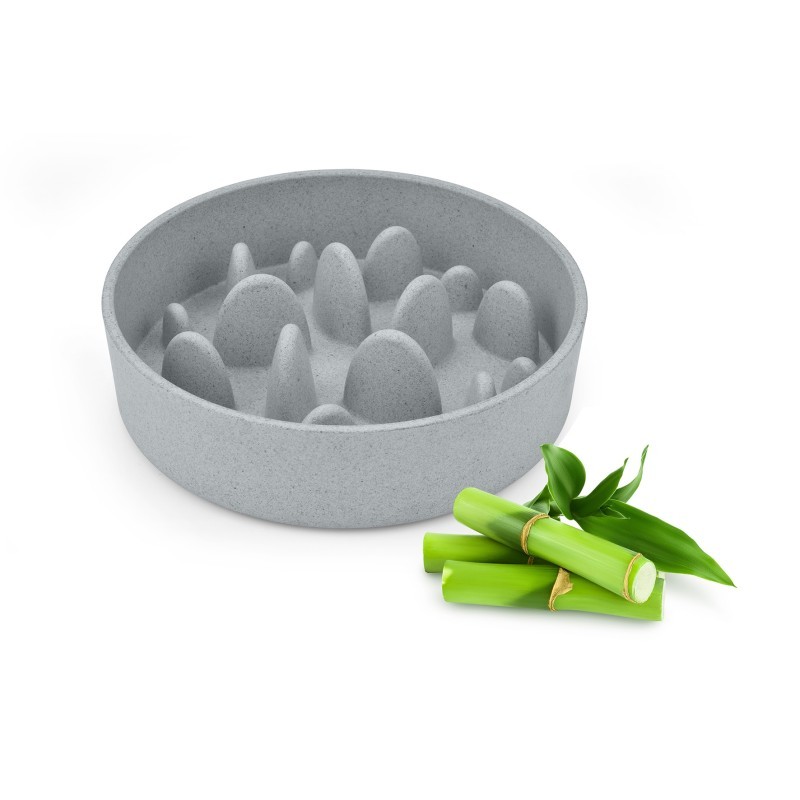 Comedero lento diseñado para que el perro emplee más tiempo en comer y así calmar la ansiedad y mejorar la digestión. Compuesto de 50% Bambú y con base antideslizante. Al disminuir la velocidad de ingesta, calma la ansiedad y mejora la digestión. También reduce el riesgo de torsión de estómago sobre todo en razas de perro grandes.