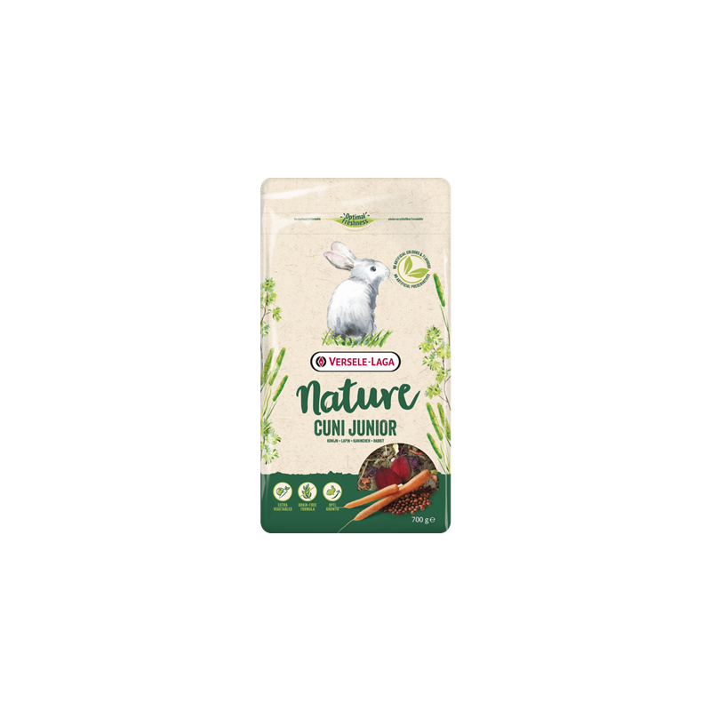 SABE A CASA, HACE SENTIR COMO EN CASA Nature es el hogar de su conejo. Toda una gama de hortalizas y hierbas sumamente variadas y repletas de vitaminas y minerales naturales. Nature le proporciona a su conejo los mismos ingredientes completos y nutritivos que su hábitat natural. Con Nature puede traer a casa un pedacito del hogar de su mascota.