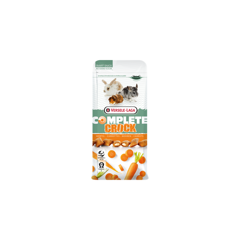 Versele-Laga Complete Crock Carrot es un snack sabroso y saludable para conejos y roedores diversos. La corteza crujiente estimula el instinto de roer y el relleno blando de zanahoria está enriquecido con vitaminas y omega 3. Los Crocks, de fácil digestión, no contienen azúcares añadidos, por lo que son el snack ideal para su animal.